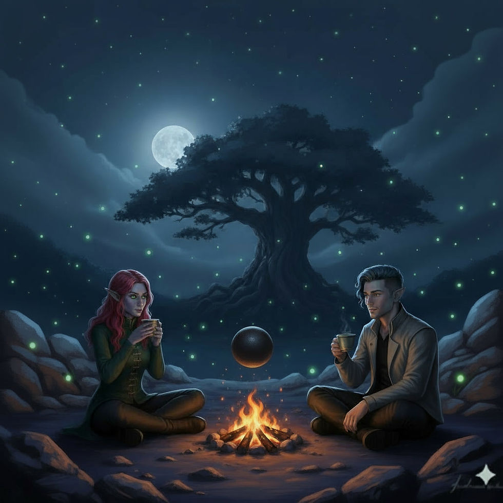 Nora realized she made me uncomfortable and changed her posture. She softened her gaze and her face was whispering a quiet sorry. A smirk lit up her face and those deep green eyes were glistening across the fire, piercing my heart through.